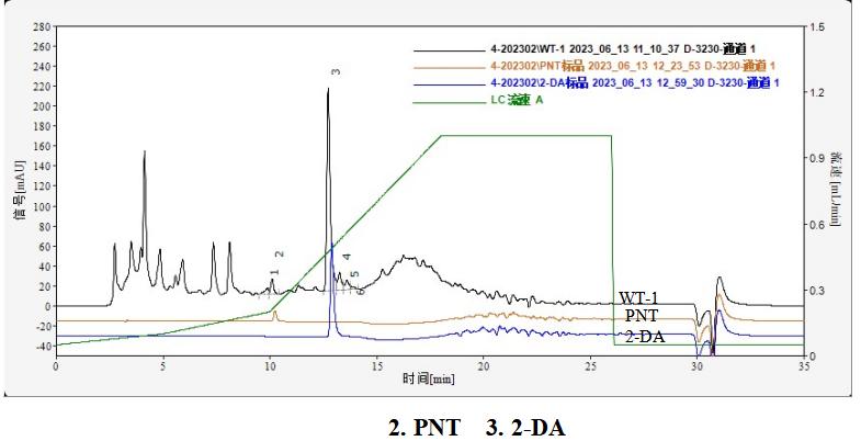流動(dòng)相A-甲醇,流動(dòng)相B-2mmol/L乙酸銨水溶液,梯度洗脫