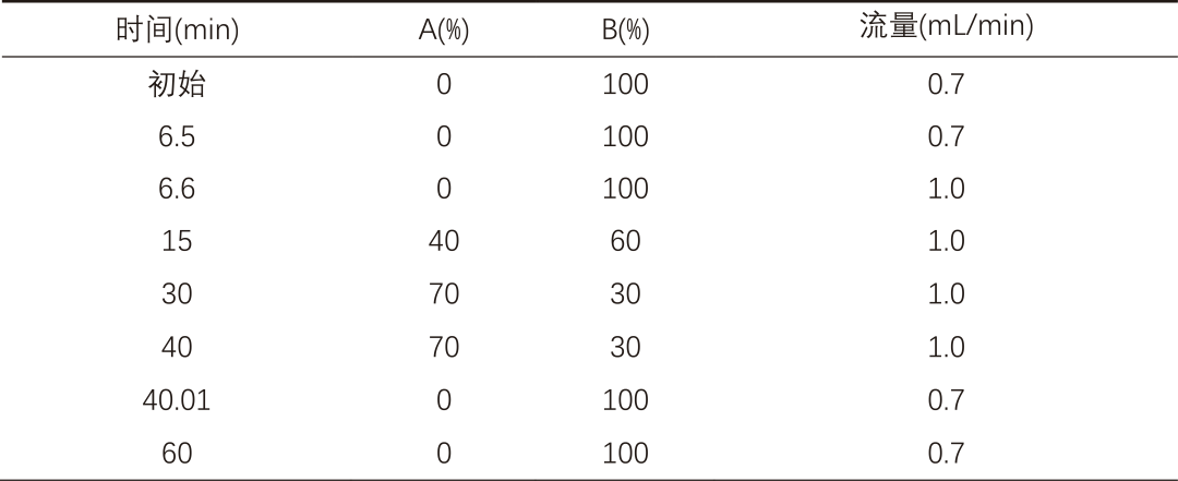 流動(dòng)相組成(V/V):A:甲醇;B:0.05mol/L磷酸二氫銨水溶液(pH=3)