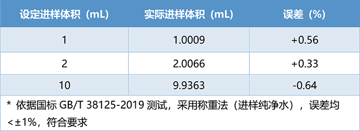 1、進(jìn)樣精度:不同體積下,誤差均控制在 ±1% 以內(nèi),重復(fù)性優(yōu)異,為可靠分離奠定基礎(chǔ)