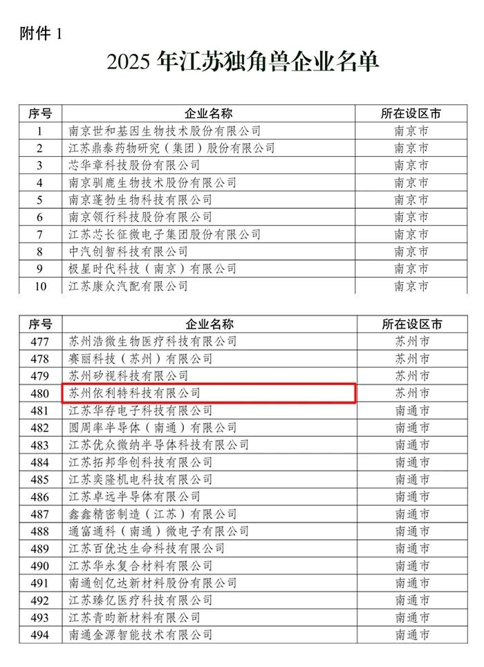 依利特科技榮登2025年江蘇獨角獸企業(yè)名單