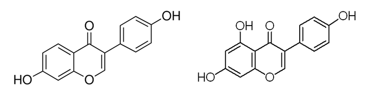 精密稱取大豆苷元、染料木素對照品各10 mg,分別置于10 mL容量瓶中,加甲醇溶解并稀釋至刻度,搖勻,作為儲備液。分別精密量取上述儲備液各1mL,置于同一50 mL容量瓶中,加甲醇稀釋至刻度,搖勻,制成每1 mL各含20 μg的混合對照品溶液。