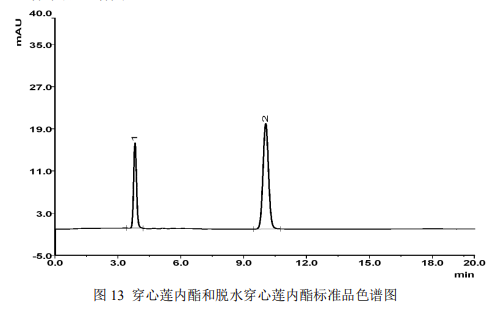 依利特使用新款的 EClassical 3200 液相色譜儀搭配 Hypersil ODS2 色譜柱,對新雪顆粒中穿心蓮內(nèi)酯和脫水穿心蓮內(nèi)酯進(jìn)行了分析檢測,結(jié)果顯示目標(biāo)物峰形良好,柱效高,可以達(dá)到基線分離,滿足定性定量分析的需求。