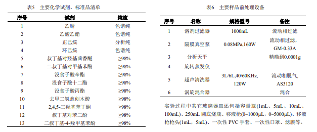 抗氧化劑混合標(biāo)準(zhǔn)使用液:移取適量體積的濃度為 1000mg/L 的抗氧化劑標(biāo)準(zhǔn)物質(zhì)混合儲(chǔ)備液稀釋至濃度為 500mg/L 的混合標(biāo)準(zhǔn)使用液。