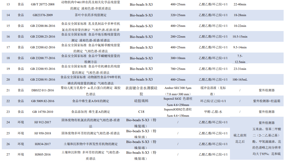 附錄 1 凝膠凈化系統(tǒng)涉及標(biāo)準(zhǔn)匯總