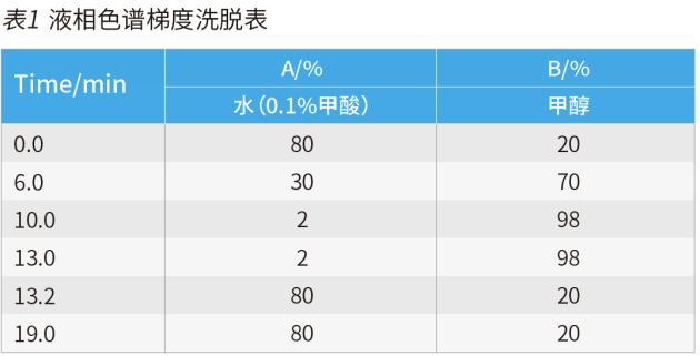 色譜柱:Supersil ODS2 3μm 2.1×100mm;Supersil ODS2 5μm,4×150mm