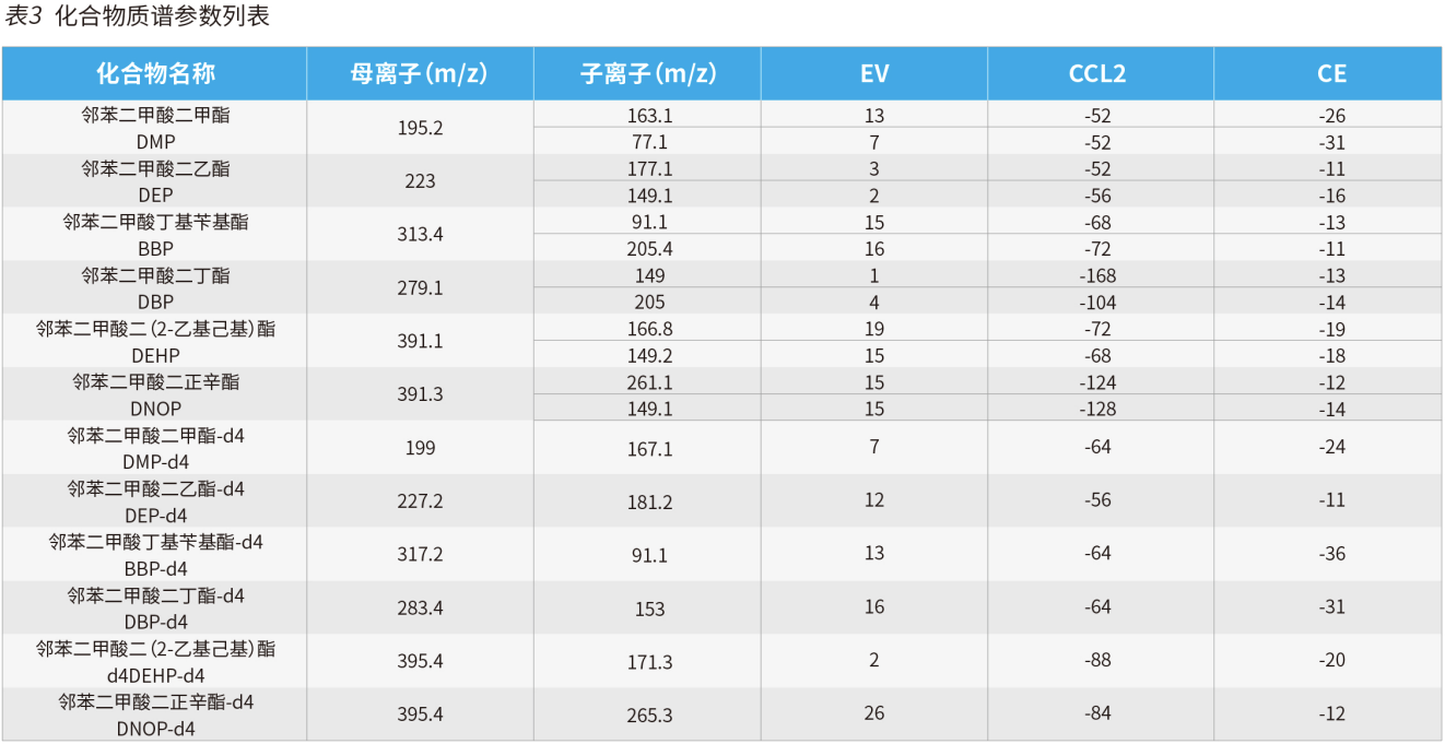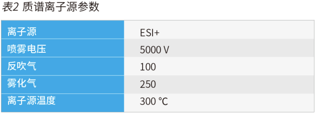 依利特 EClassical 3200L-MS2 Vertical 9100 三重四極桿液質(zhì)聯(lián)用系統(tǒng)進(jìn)行分析,離子源參數(shù)及目標(biāo)化合物質(zhì)譜參數(shù)見表 2 和表 3。