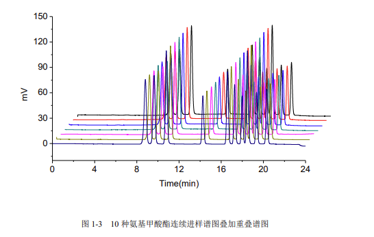 圖 1-3 10 種氨基甲酸酯連續(xù)進(jìn)樣譜圖疊加重疊譜圖