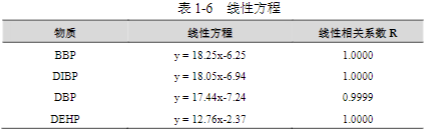 由表 1-6 可知,按照本解決方案提供的儀器及檢測(cè)方法進(jìn)行分析,DEHP、DBP、BBP、DIBP 在濃度 1μg/mL~100μg/mL 濃度范圍內(nèi),線性相關(guān)性良好。