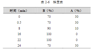 流動相:A: 水,B: 乙腈,梯度洗脫