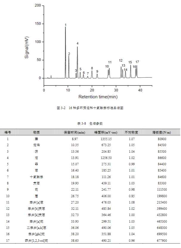 從以上結(jié)果可知,16 種多環(huán)芳烴分析速度快,不對稱度好,柱效高,適合于 16 種多環(huán)芳烴的分析。