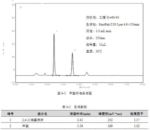 按照 4.3 中實驗方法,對甲醛標準溶液進行測定,結(jié)果如下: