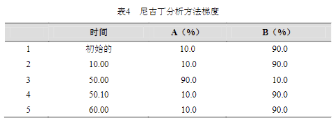 對照品儲備液的制備:取一定量的尼古丁對照品用甲醇溶解,定容成濃度為 500μg/mL 的溶液。備用。