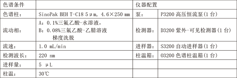 依利特新款的EClassical 3200液相色譜儀搭配新推出的SinoPak BEH T-C18色譜柱,對(duì)蜂毒干粉中蜂毒溶血肽成分進(jìn)行分析,柱效高,峰形好,滿足定性定量分析的需求。