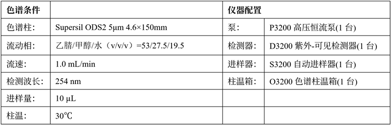 使用依利特新的EClassical 3200高效液相色譜儀,搭配Supersil ODS2色譜柱,能很好的檢測出目標(biāo)物,且峰形良好,滿足定性定量分析的要求。