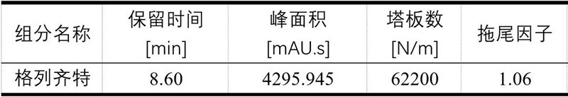 依利特新款的EClassical3200液相色譜儀搭配經(jīng)典的Supersil ODS2色譜柱,對格列齊特藥品進行分析,峰形對稱性很好,柱效也很高,滿足定性定量分析的需求。
